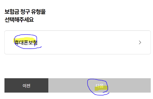 7. 자신이 접수하는 보험이 휴대폰보험인지 확인후 다음을 눌러주세요