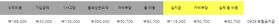 회색음영 부분은 내가 약관을 확인하며 미리 예상치를 냈던 부분이고