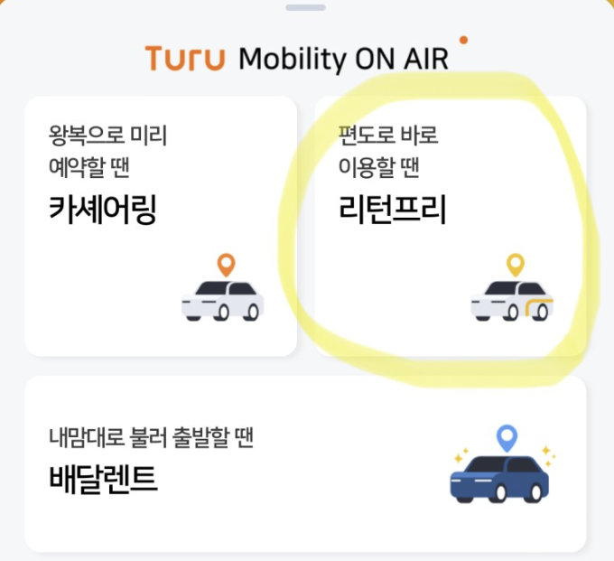 가끔 편도로 이동할 때가 종종 있다. 내 주변과 목적지 주변에 리턴프리가 있다면 한 번쯤은 이용해 보는 것을 추천한다.