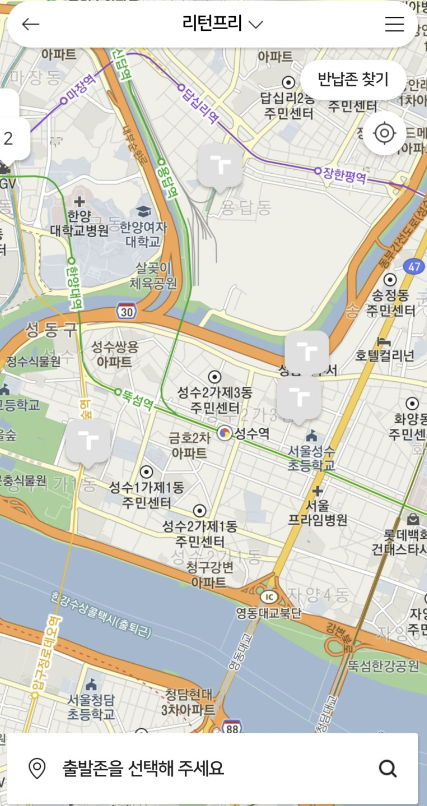 말 그대로 지정된 반납지 어디나 반납하면 되는 서비스다. 굳이 대여한 스팟에 반납하지 않아도 된다.