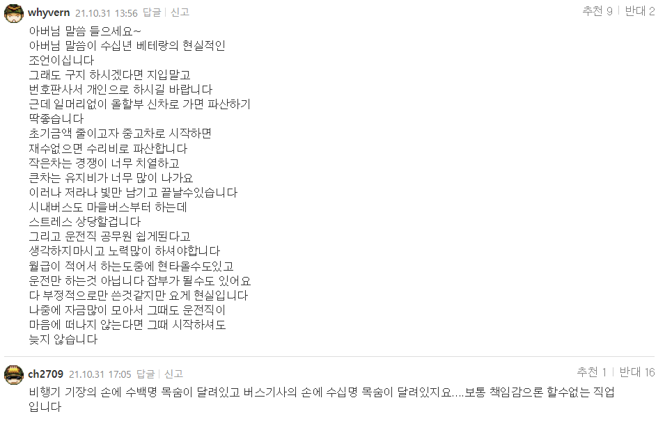 운전직 고민중인 20대 청년입니다. 사회생활 선배님들의 고견을 듣고싶습니다