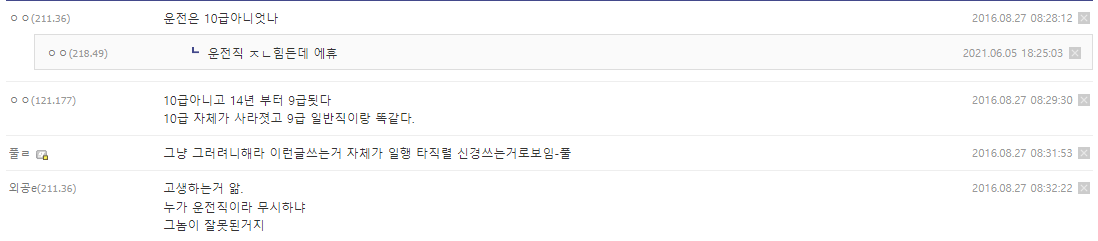 실제 시험을 치고 들어온 운전직공무원의 경우도 최근에는 무시당하는 경우는 없다고 합니다.