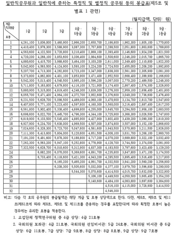 9급공무원 호봉표는 아래 사진을 참고하시길 바랍니다.