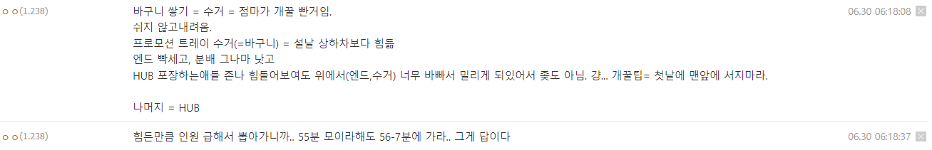 자꾸 쿠팡이랑 비교하는데 쿠팡은 치우는 사람들이 따로 있음