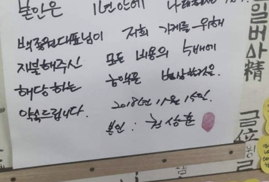 홍탁집 아시죠~ 그분이 올린 각서와 (저는 이런 내용은 몰랐습니다....5배배상....ㅎㅎ)