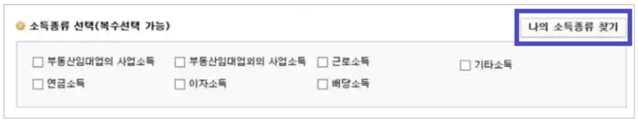 5. 아래와 같은 화면이 나오면 [나의 소득종류 찾기] 메뉴를 클릭해줍니다.