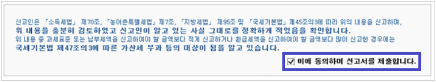 8. 신고서 동의 안내문을 읽어본 후 동의 버튼에 체크해줍니다.