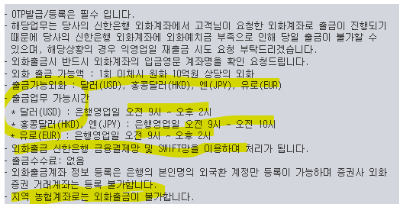 홍콩달러, 엔화는 은행영업일 오전 9시~오전 10시 (딱 한시간!)까지입니다.